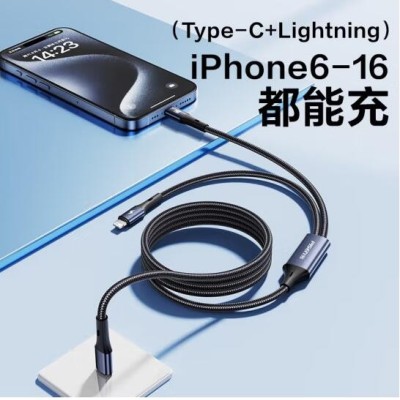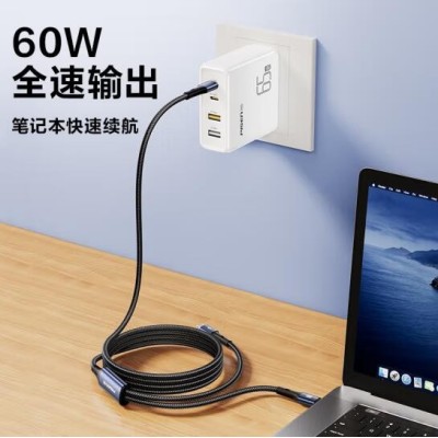 品胜双Type-C数据线二合一PD60W充电线一拖二车载适用苹果iPhone16pro/15/14手机华为70小米笔记本ipad